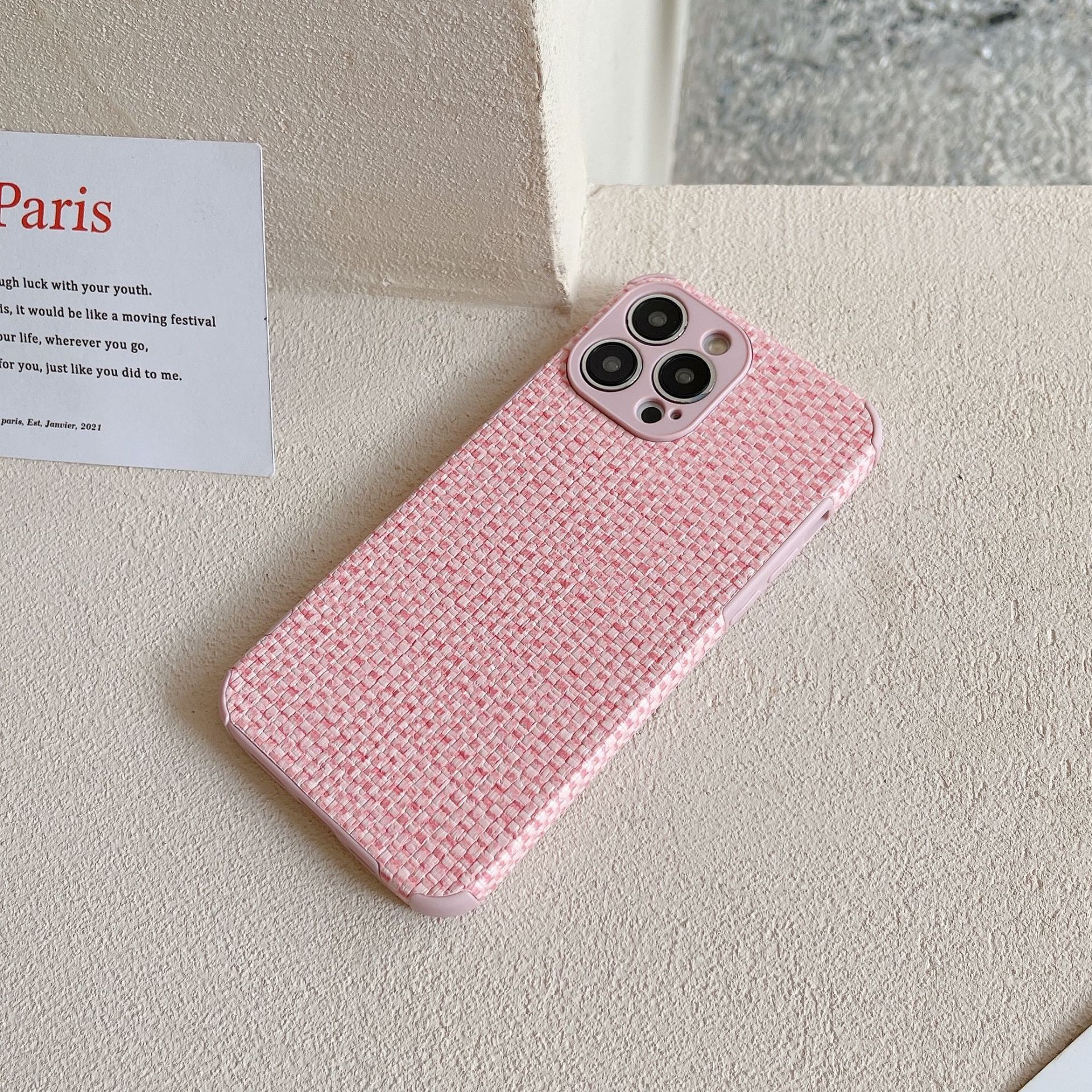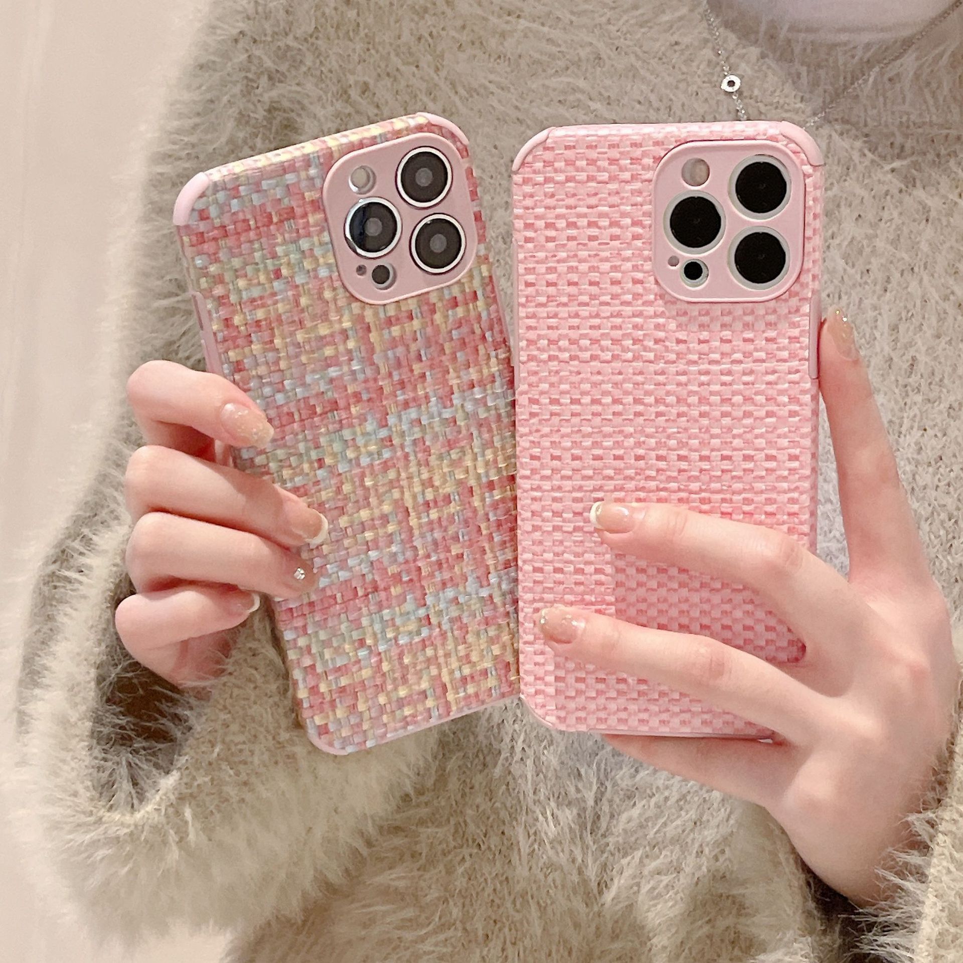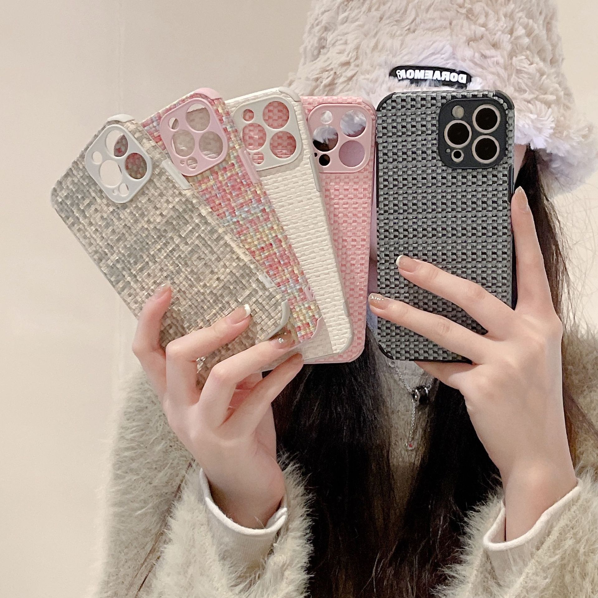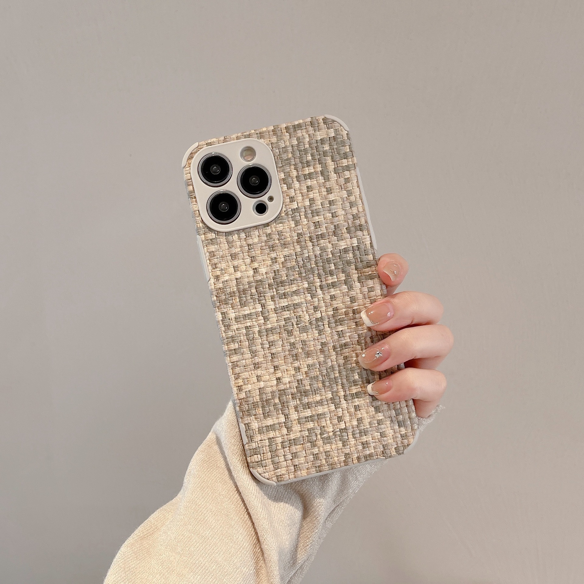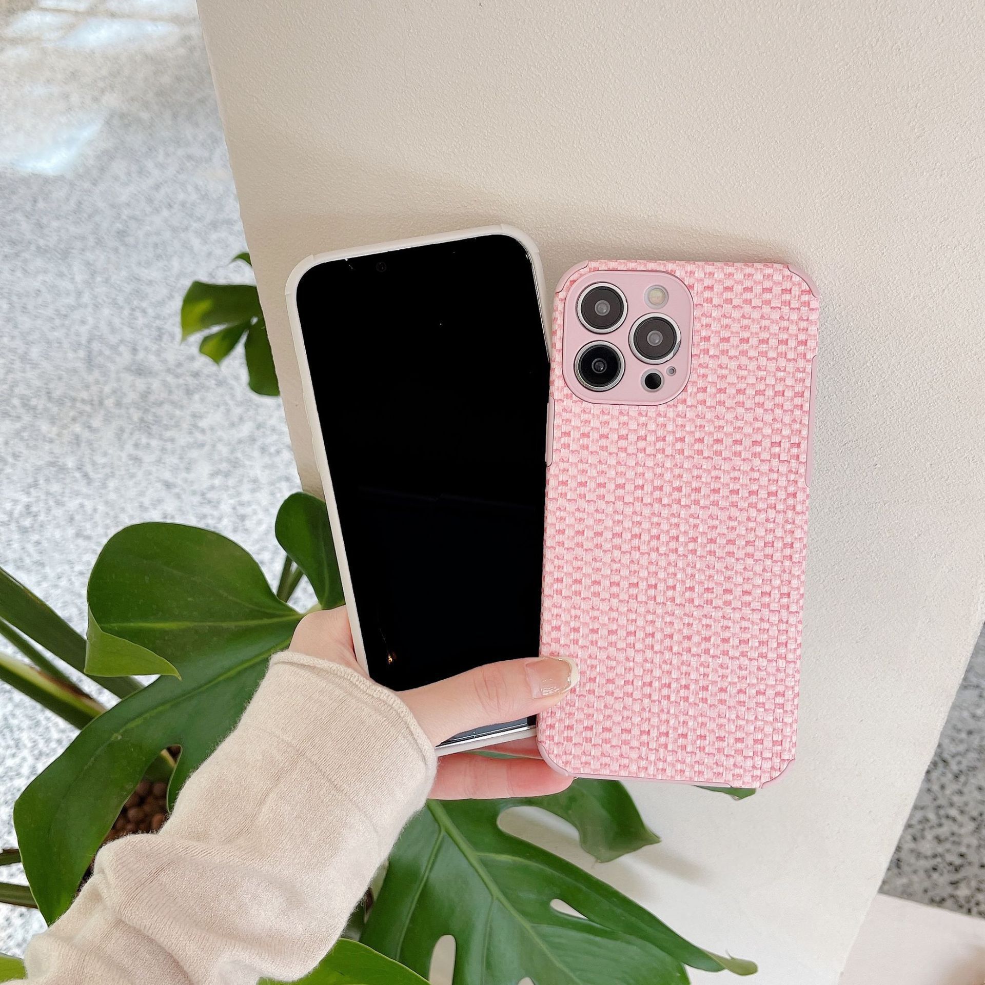 Retro Woven-pattern Leather Phone Case