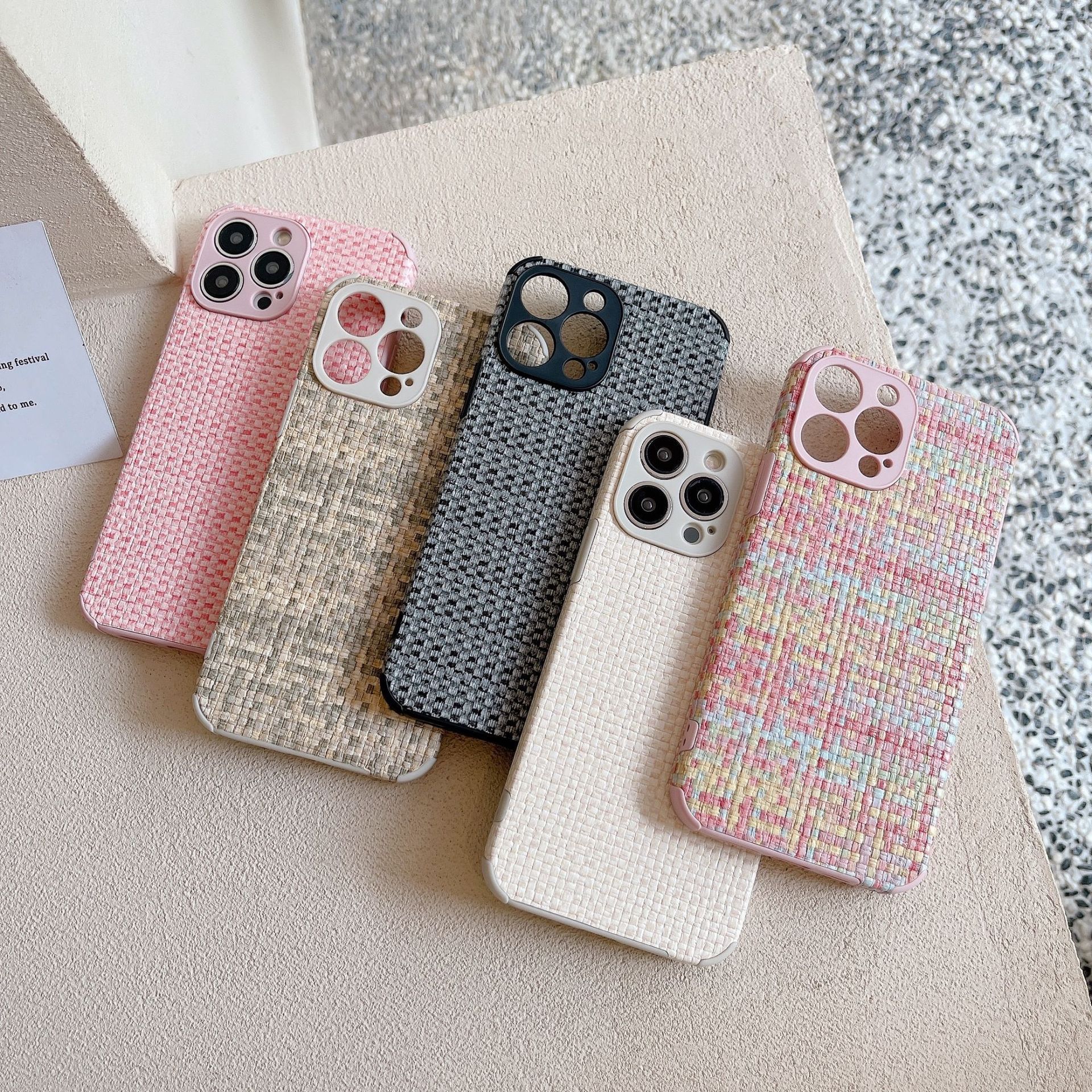 Colors: Pink woven pattern, black woven pattern, brown woven pattern, white woven pattern, multicolor woven pattern